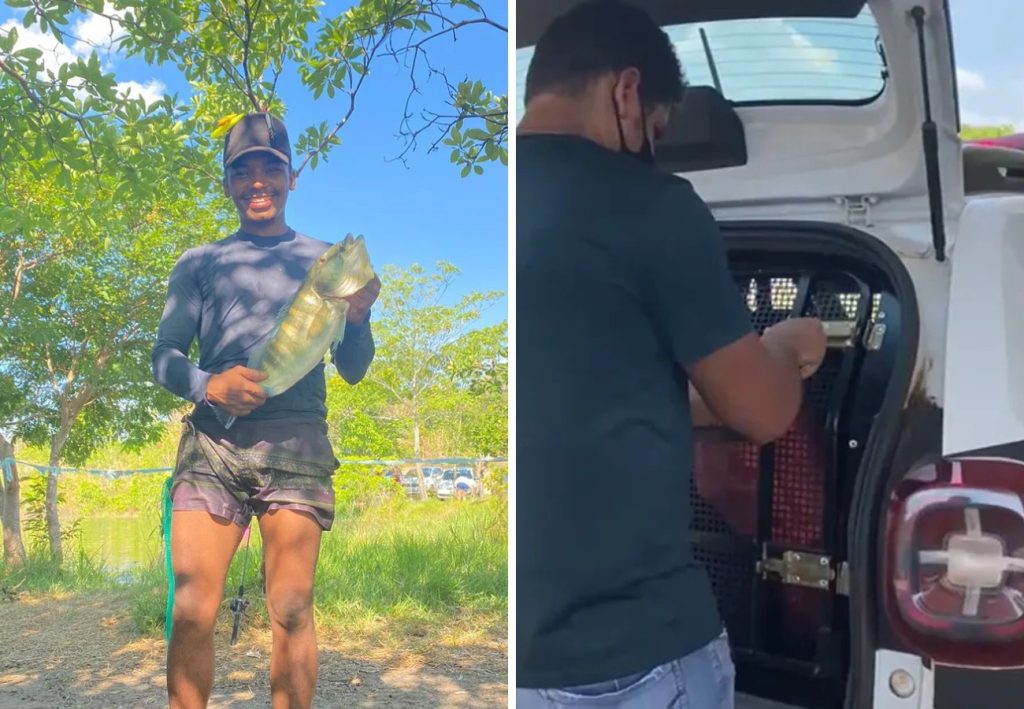 Vinicius Lucas Ferreira à esquerda e ‘Guerreiro’ sendo preso à direita