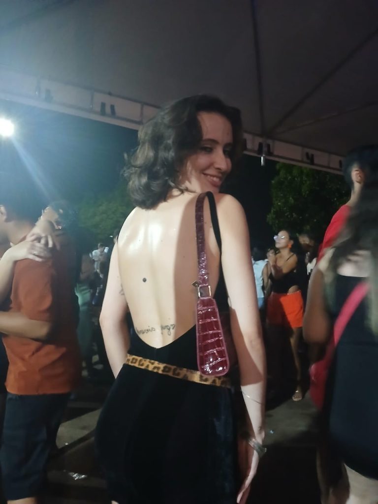 A estatueta gigante ficou no Bloco da Brilhosa, que neste domingo realizou o concurso da melhor sósia de Fernanda Torres do cerrado. A programação faz parte do carnaval de rua do coletivo de blocos Fenty Ampla.