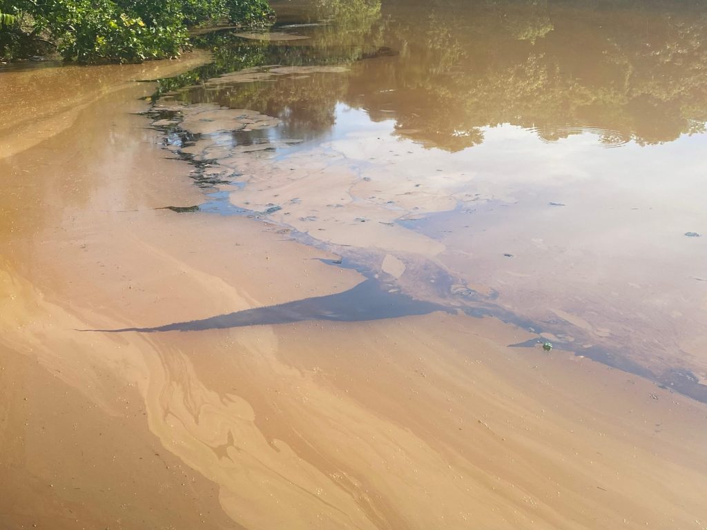 Manchas de óleo são vistas dentro do Parque Cesamar