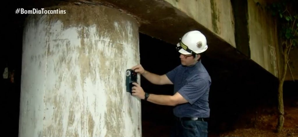 Engenheiro utiliza equipamentos para avaliar estrutura de ponte