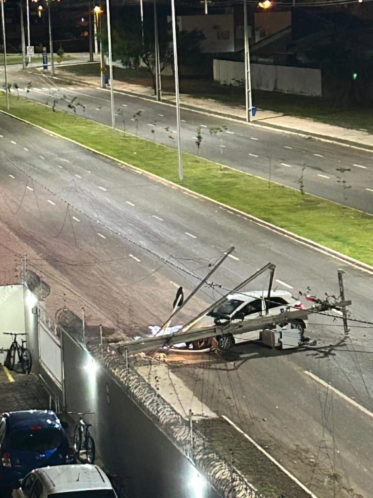Um motorista perdeu o controle do veículo e colidiu em um poste de energia na Avenida LO-09, em Palmas. O acidente aconteceu na madrugada desta segunda-feira (20), e por causa da batida cerca de 3,2 mil clientes ficaram sem energia elétrica e parte da pista está interditada.