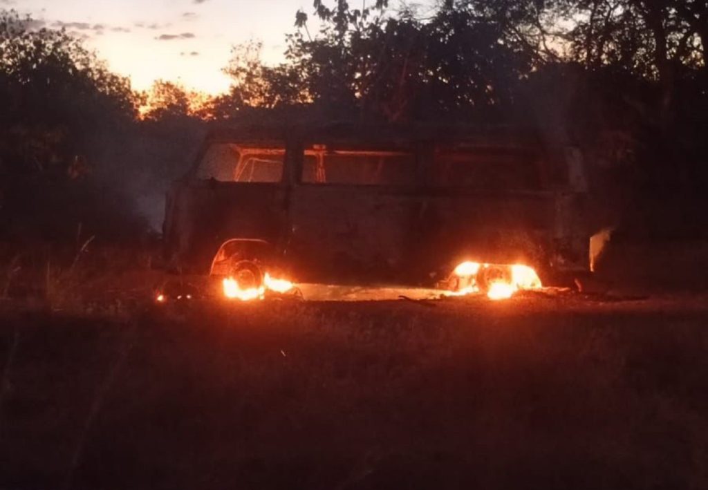 Kombi escolar pegou fogo na zona rural de Formoso do Araguaia